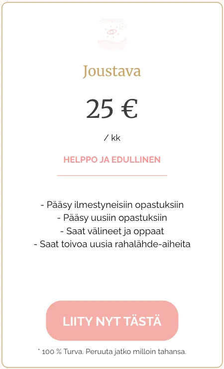 Tule mukaan kanssasisarten kanssa luomaan uusia rahalähteitä ihanassa seurassa. Meitä on paljon. Luodaan yhdessä rahalähteitä joihin voi luottaa ja jotka tuntuvat hyvältä. Luo runsautta ja toivomaasi elämää - vapaasti, omalla tahdillasi ja ohjat omissa käsissäsi.